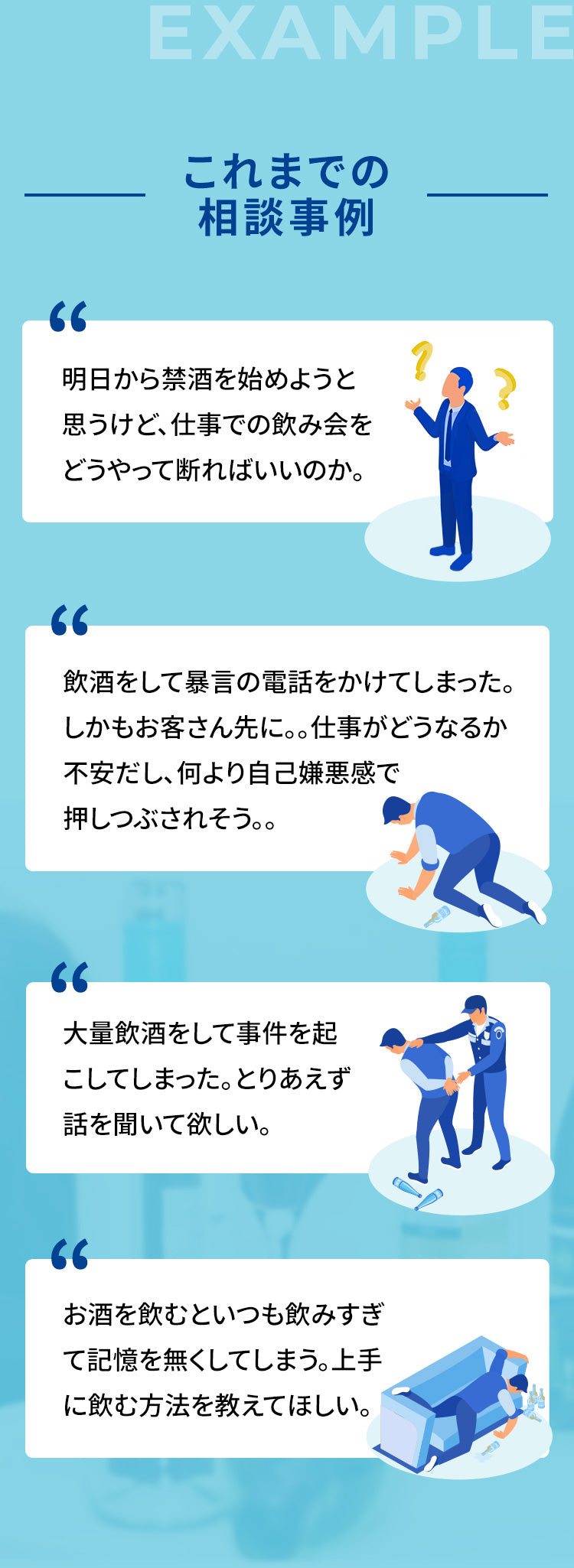 本サービスでは、日常生活におけるお酒に関するお悩みに対するアドバイスを提供しております。専門的なカウンセリングや相談が必要な場合は、適切な専門家へのご相談をお勧めします。私たちは心を込めてサポートしますが、専門的なアドバイスには限界があることをご理解頂いた上でご活用ください。